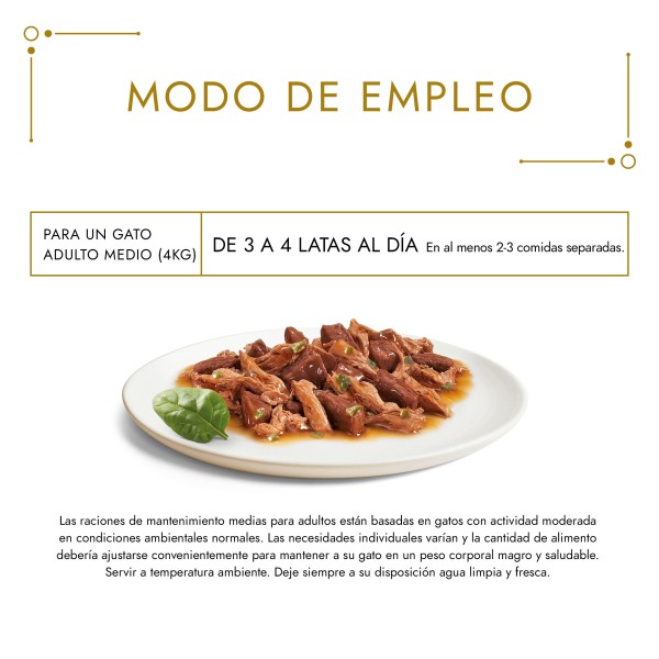 Tu gato es un verdadero experto y le gusta probar diferentes texturas y sabores cada día. Por eso GOURMET Gold ha creado Doble Placer, sabrosas recetas para mimar su sofisticado paladar con una experiencia diferente de sabor en cada comida. Tiernos trocitos combinados con láminas dulcemente cocinadas: la combinación ideal de dos texturas diferentes en la misma comida para ofrecer a tu gato el placer de una sutil mezcla de gustos y texturas.