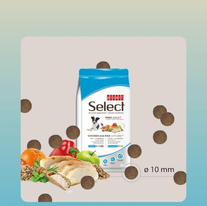 Alimento de arroz y pollo para razas pequeñas en edad adulta.